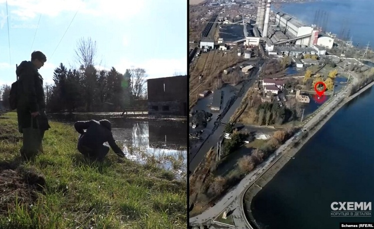 Під час зйомок спільного розслідування «Схем» та Центр Протидії Корупції про масштабну аварію на Бурштинській ТЕС знімальна група у супроводі екоактивіста взяла дві проби рідини: з місця затоплення території станції та з Бурштинського водосховища, що розташоване поруч.