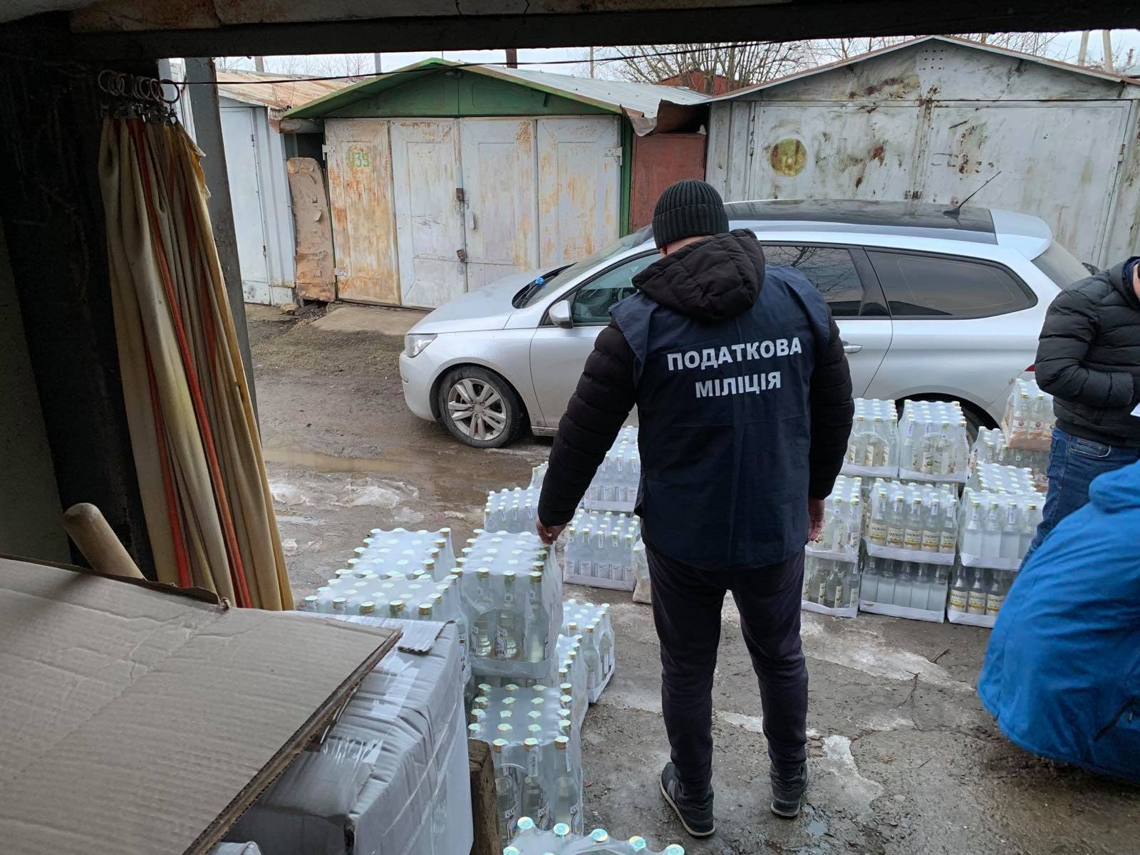 За результатами слідчих дій, проведених у гаражних приміщеннях, з незаконного обігу вилучили 4 046 літрів фальсифікованих горілчаних та коньячних виробів з марками акцизного податку невстановленого взірця та автомобіль, який використовувався для транспортування незаконно виготовлених підакцизних товарів.