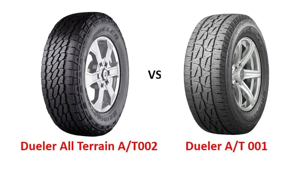Автошини Bridgestone Dueler All Terrain A/T002 отримали оцінку «C» на етикетці ЄС за гальмування мокрою дорогою, що вказує на хороший рівень продуктивності на мокрій дорозі. З іншого боку, Bridgestone Dueler A/T 001 отримав оцінку «E», що значно гірше.