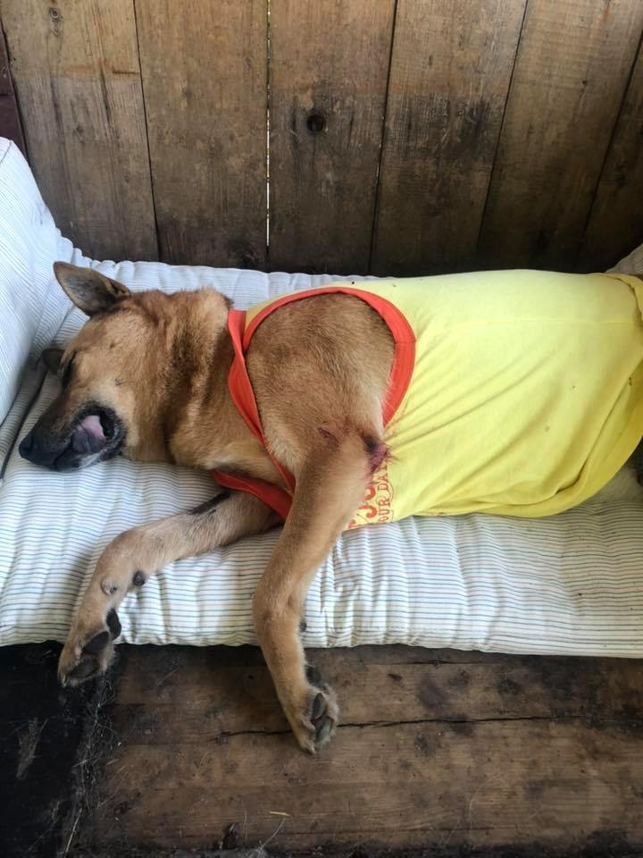 "Собака по імені «Рижик» потрапила до рук «ЖИВОДЕРІВ»!!!!!!!! По вул.Каракая, 8, де проживають собаки-безхатьки (стерилізовані, добродушні), 24 серпня ввечері група наркоманів познущались з двох собак. «Старічку» 14 років розрізали навпіл вухо, а дівчинці обрізали на спині шкіру, і два проколи. Сьогодні собака- завтра людина", - пишуть волонтери.