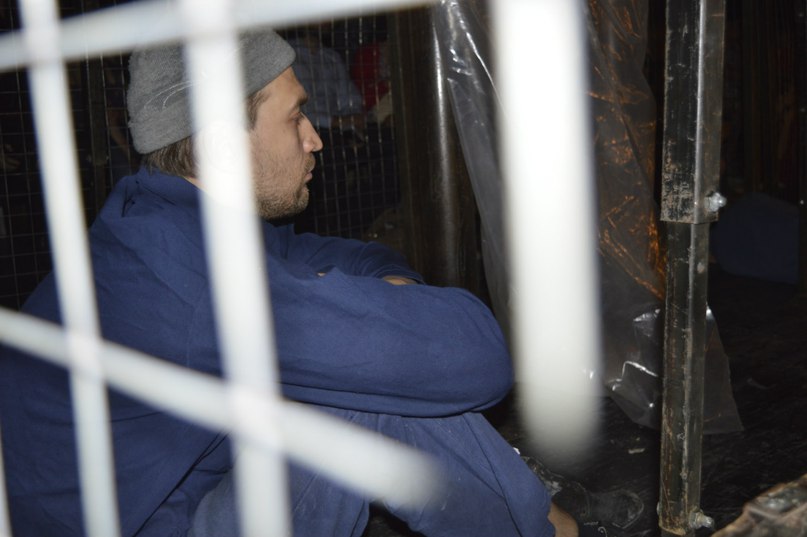 В чорних воєнізованих тонах і тривожному загрозливому напівмороці, глядачі самі сидять в клітці, дивлячись виставу знизу.