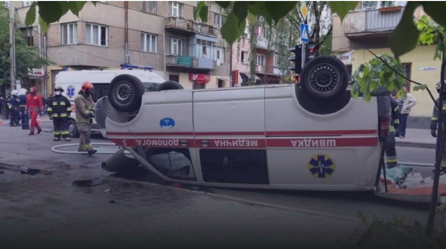В результаті зіткнення відбулося перекидання автомобіля швидкої медичної допомоги. Внаслідок дорожньо-транспортної пригоди троє осіб отримали тілесні ушкодження.