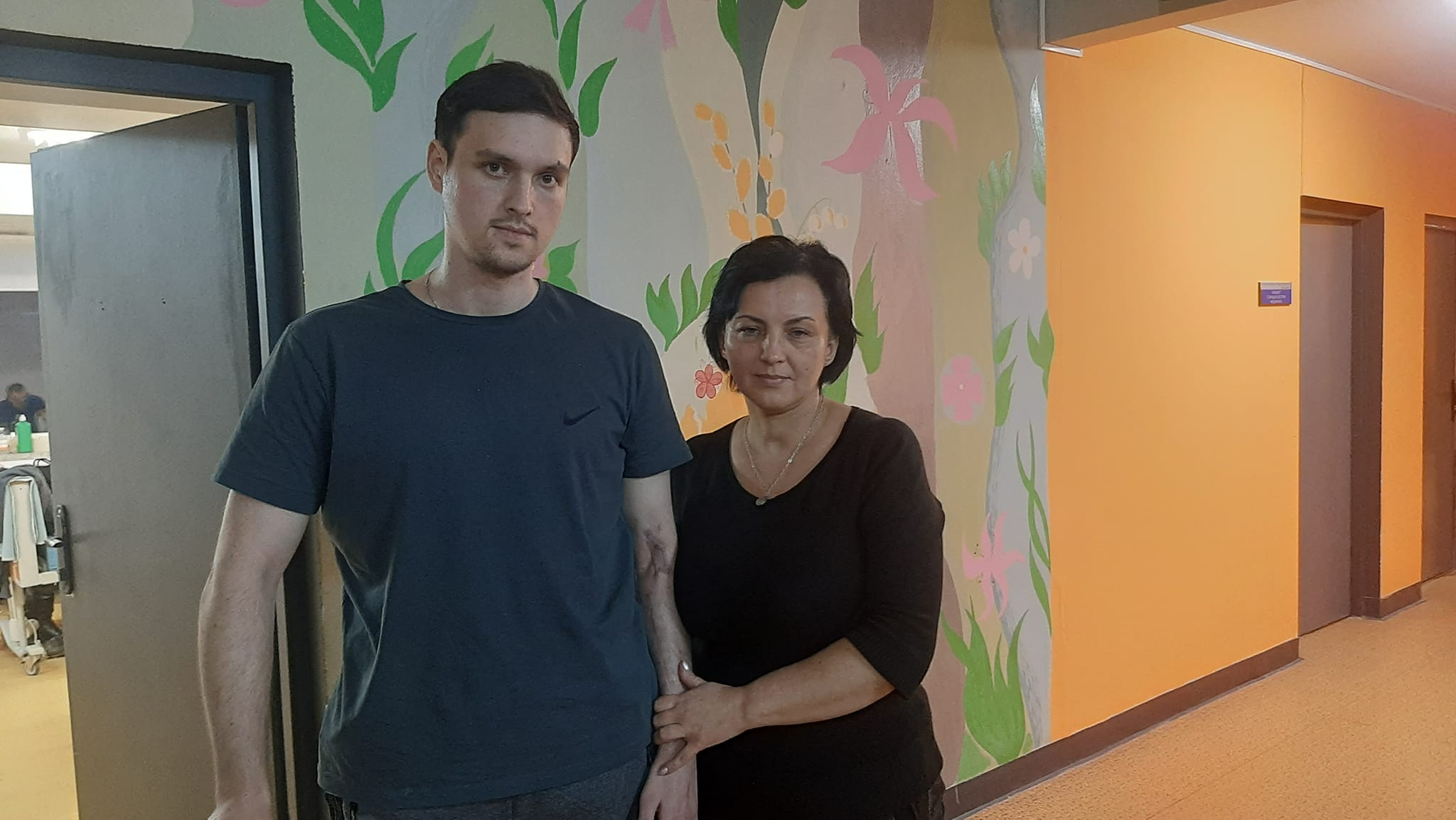 Пані Ірина, мама Мар'яна, постійно поруч: допомагає синові одягнутися й піднятися, щоби міг пройтися хоч кілька метрів. Жінка пригадує, що коли приїхала у Полтаву, від побаченого жахнулася: три складні переломи у лівій нозі й один – у правій, травма руки, уламки в сечовому міхурі та прямій кишці, розтрощене бедро.