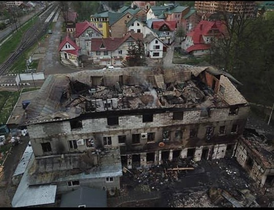 Як повідомляє керівник ГО "Наш дім Яремче" Роман Біланюк, яремчанські правоохоронці підозрюють підпал в справі пожежі цієї триповерхової споруди.