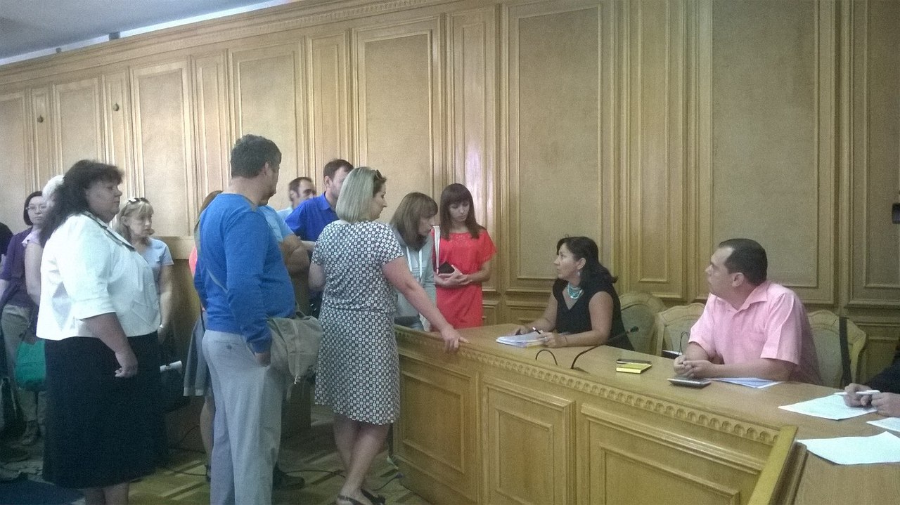 Півсотні працівників підприємства прийшли на закрите засідання зборів акціонерів підприємства в міську раду, адже на порядку денному директор підприємства мав представити звіт та вирішувалось питання про припинення директора оскільки вийшов термін його перебування на посаді. Люди обурюються, що не хочуть, щоб насильно поміняли їхнього керівника.