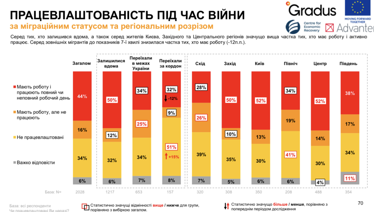 У динаміці найкраща ситуація з поверненням на роботу — серед мешканців Центру та Заходу, найгірша — мешканців Сходу.