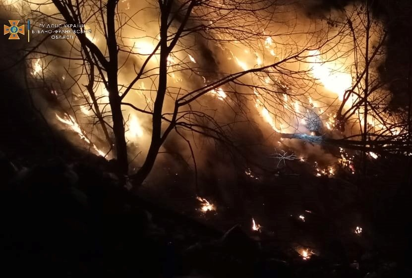 Повідомлення про займання на полігоні рятувальники отримали 13 травня о 4:32. На місце одразу виїхали пожежники з Тисмениці.