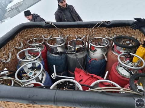Кожна повітряна куля розрахована на 8 пасажирів, але більша частина простору у кошиках була заповнена балонами з пальним (приблизно 0,5 т пального у кожній). Ще кілька людей залишилися на землі для координування польоту.