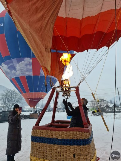 Андрій розповів, що маса кулі з корзиною та газом важила 1,5 тонни. Це більше, ніж маса легкового автомобіля. Але піднялися в повітря легко й швидко.