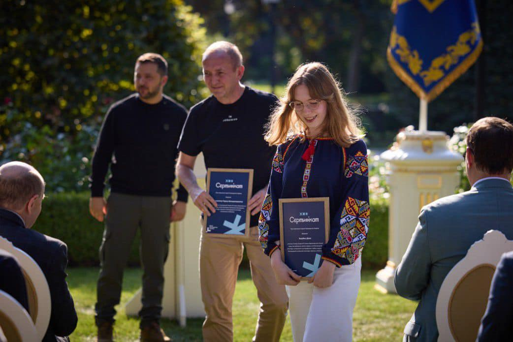 З нагоди прийдешнього Дня працівників освіти Президент України Володимир Зеленський вручив сертифікати на отримання премій переможцям міжнародних учнівських олімпіад та їхнім наставникам.