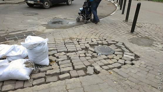 У Івано-Франківську на вулиці Незалежності вже третій день встановлюють автоматичний протитаранний стовпчик.
