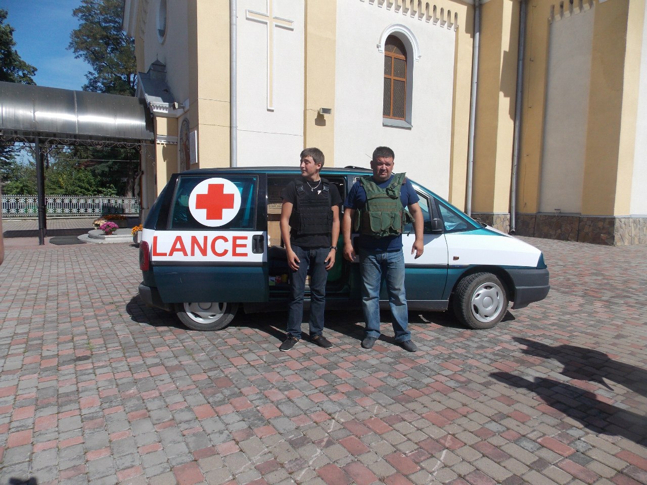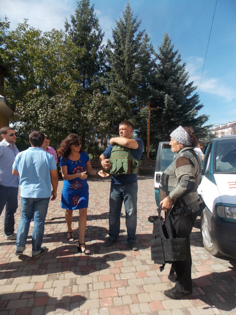 Для двох шоферів, які визвались відвезти машину люди купили два бронежилети, які вони залишуть тим же військовим.