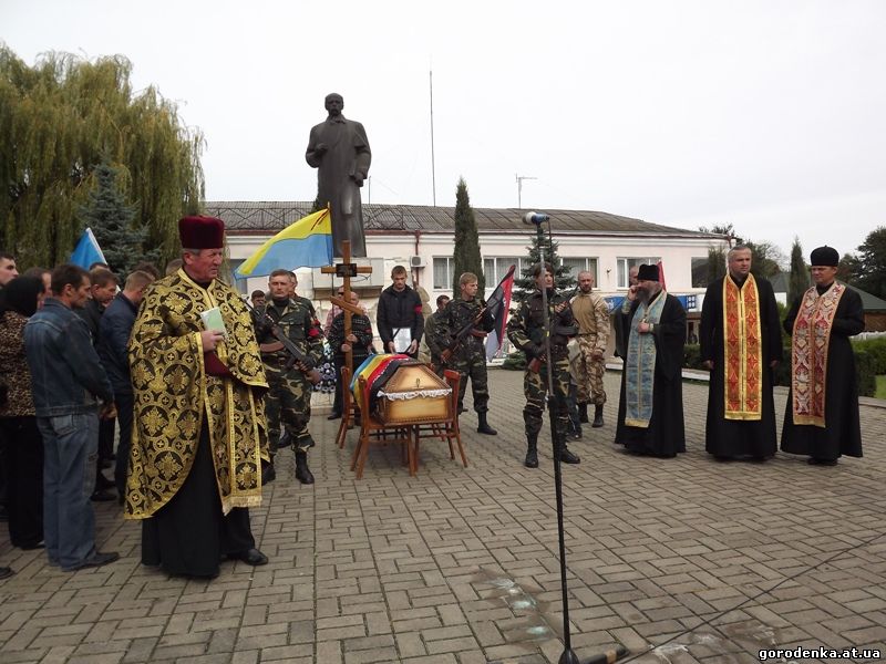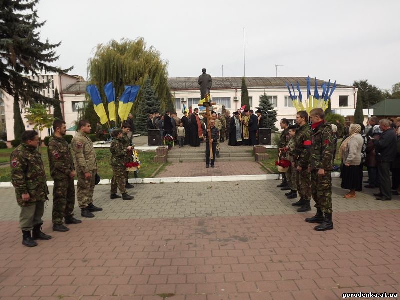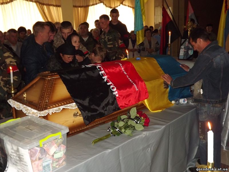 Сьогодні біля районного палацу культури жителі Покутської Городенківщини прощалися з Героєм України, бійцем Добровольчого батальйону Правого сектору АТО, який загинув на Донеччині Степаном Стефураком.