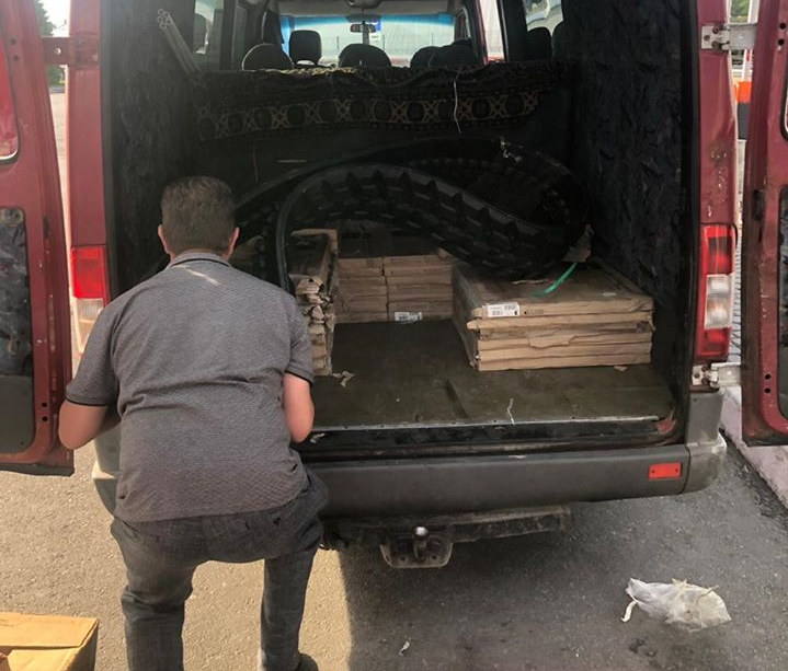 Зокрема, водій мікроавтобуса намагався «зеленим коридором» провезти понад тонну керамічної плитки та гумову гусеницю до трактора вагою понад 100 кг.