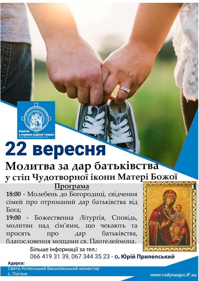 «Тому саме в цей день ми запрошуємо всіх, хто просить, молиться і чекає на дар батьківства приїхати до нашого відпустового місця в Погоні, до Чудотворної ікони Цариці Покуття, щоб ми могли спільно просити в Бога про дар батьківства для всіх сімей, які його чекають.