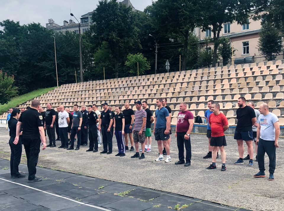 Поліцейські здавали нормативи з різних фізичних вправ, починаючи від бігу та закінчуючи комплексно силовими вправами та прийомами рукопашного бою.
