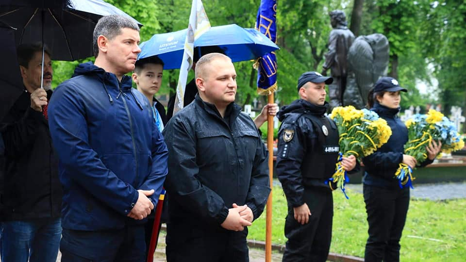 У Меморіальному сквері відслужили панахиду, а після начальник поліції області Володимир Голубош, його заступник Олег Йосипів та міська влада поклали квіти до пам’ятників загиблим.