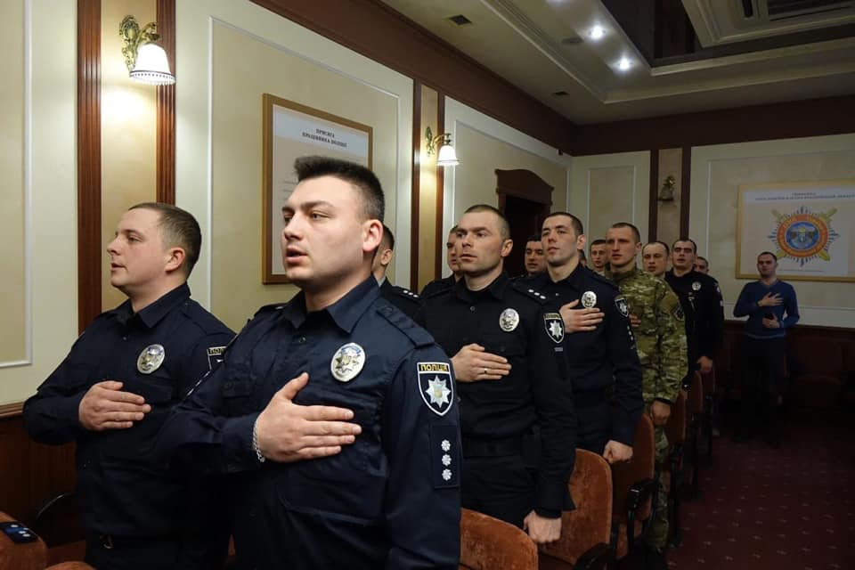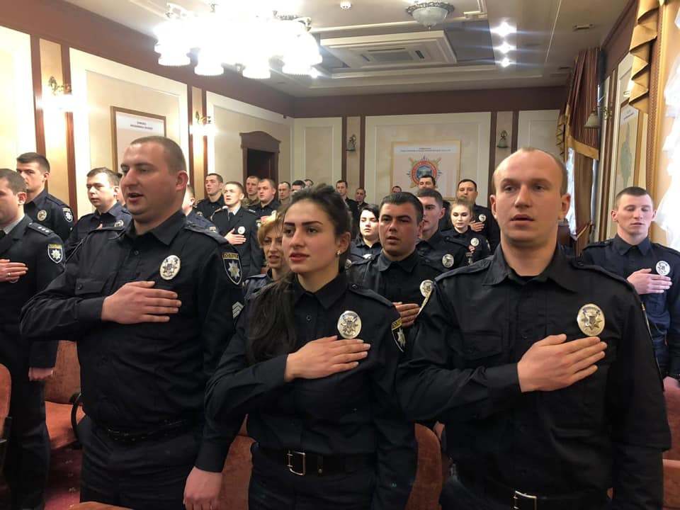 Десять прикарпатських поліцейських–новобранців склали присягу на вірність народові України, ще 32 поліцейських отримали чергові звання.