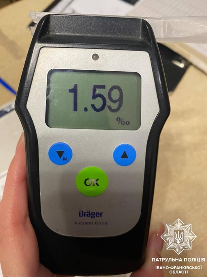 Чоловік погодився пройти освідування на стан сп’яніння у медичному закладі. Результат — 1.59 проміле алкоголю в організмі.