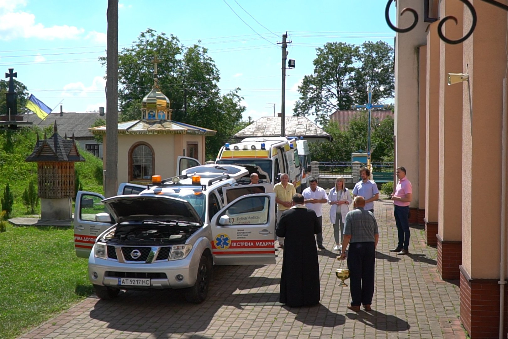 Сьогодні, 25 червня, на парафіяльному подвір’ї церкви Воздвиження Чесного Хреста УГКЦ селища Лисець отець Федір Бойко освятив та поблагословив привезені волонтерами з Італії три транспортні засоби.