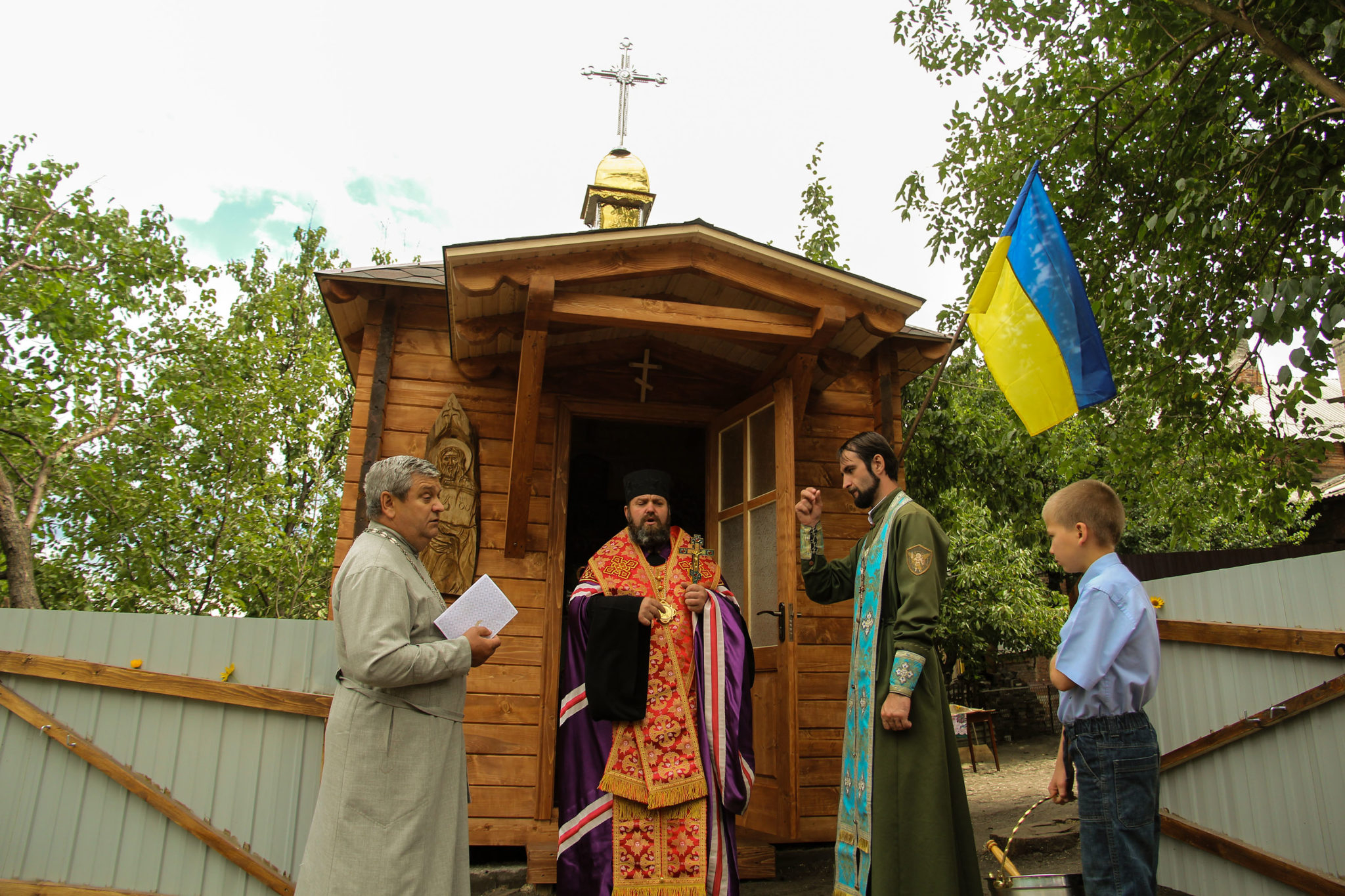 У Лисичанську Луганської області військові капелани освятили вже 12-ту каплицю, яку збудували волонтери з Прикарпаття
