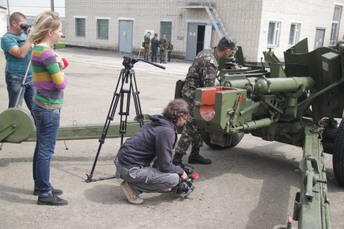 Знімальній групі дозволили не тільки дивитись зі сторони за ходом дій, але й посадили у самохідну установку 2С3 «акація», продемонстрували як працюють приціли у протитанковій гарматі «рапіра», як розгортається у бойове положення бойова машина БМ-21 «град». А на довершення журналіста каналу Ірину Панчишин, яка вперше попала до військової частини навіть трішки прокатали на місці командира однієї з бойових машин.