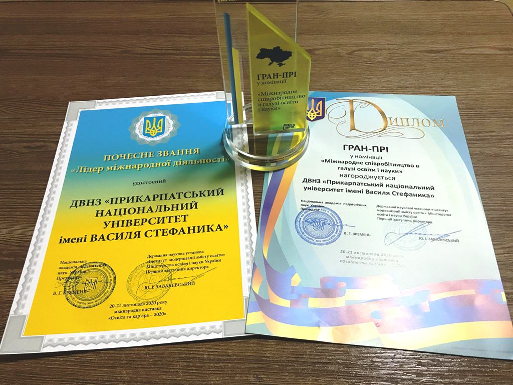 Відрадно зазначити, що за результатами експертного оцінювання представлених на конкурс робіт учасників виставки Прикарпатський національний університет імені Василя Стефаника отримав Гран-Прі в номінації «Міжнародне співробітництво в галузі освіти і науки» та нагороджений почесним званням «Лідер міжнародної діяльності».