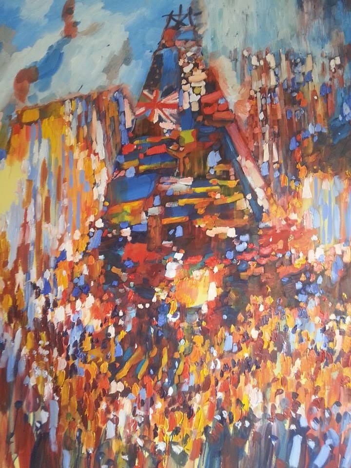 Як розповів Бончук, робота буде висотою у 3,3 метри, а довжиною у 30 метрів та умовно розділена на 12 подій. Центральна частина буде винесена із полотна в об’ємі, пише Курс.