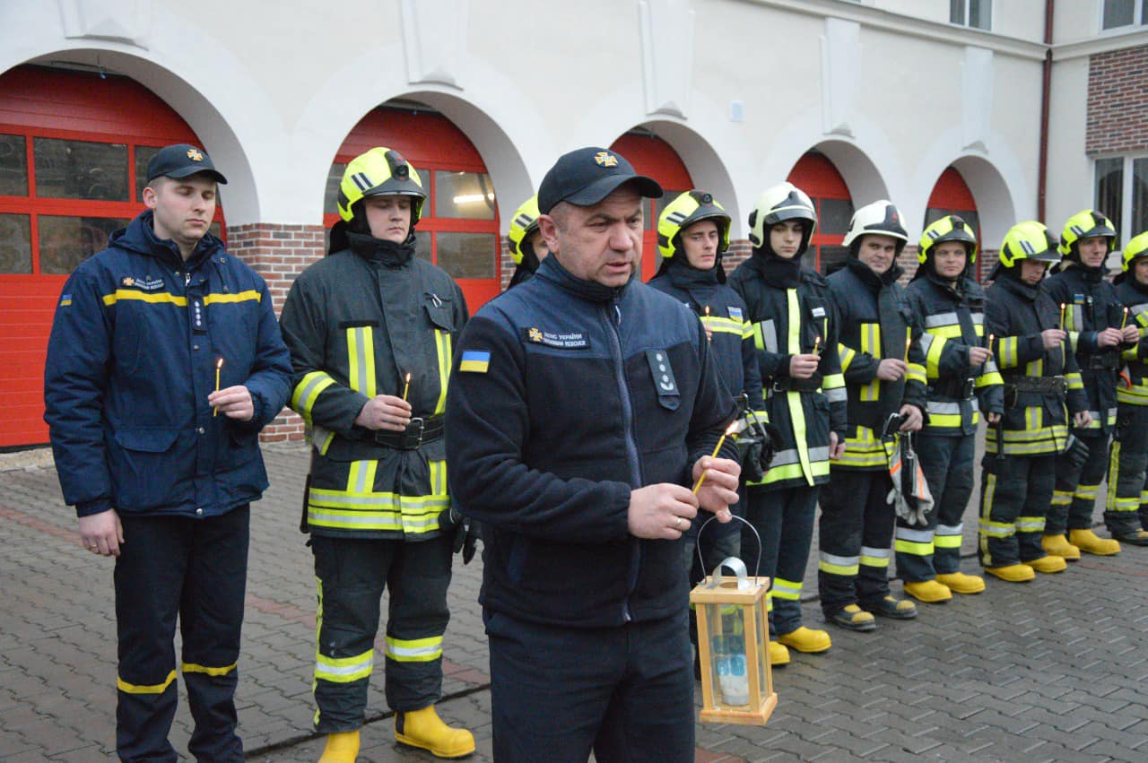 Також пластуни виконали традиційну пісню та передали запалені лампадки рятувальникам.