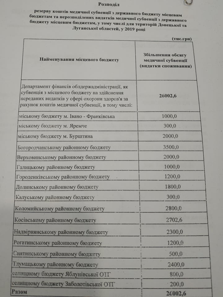 Івано-Франківська область отримає 26 млн медичної субвенції з державного бюджету.