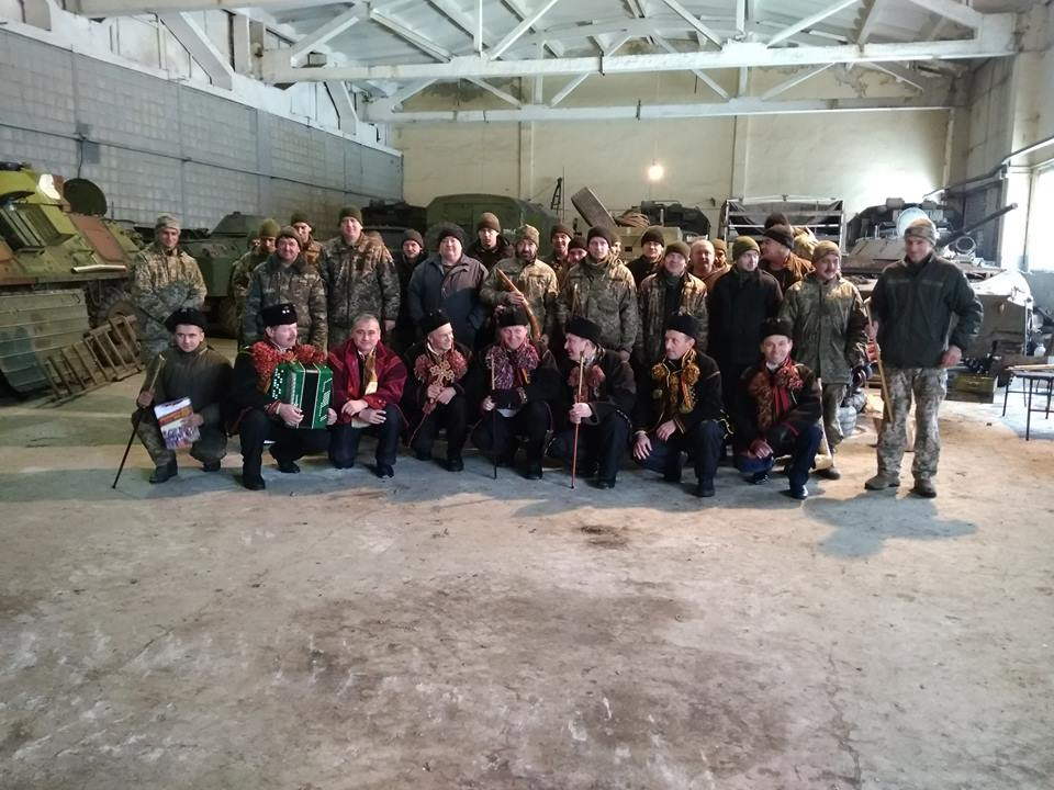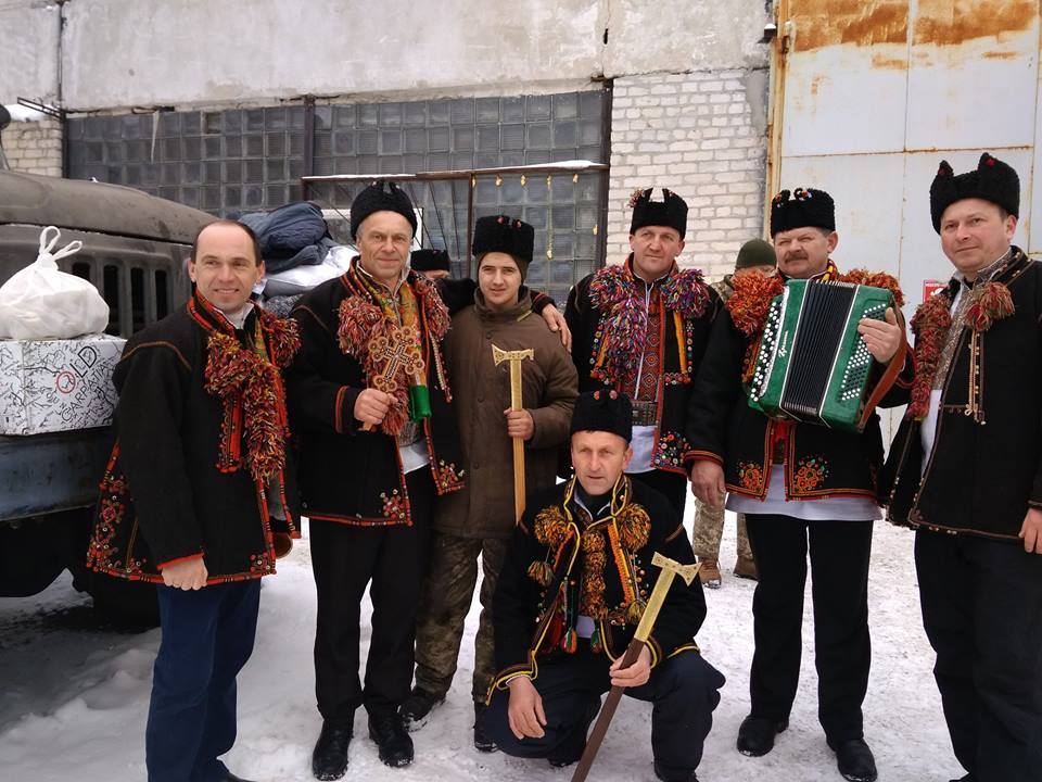 “Гуцульська коляда” - семеро чоловіків у вишитих сорочках, сердаках, прикрашених кутасами, з топірцями-бартками своїм співом створюють святковий настрій і дарують радість. Вони приїздять до своїх земляків, які зараз захищають нашу державу на сході, передають зібрані односельцями речі, продукти та вітають військових з Різдвяними святами. От і сьогодні щирі, колоритні, відверті газди-колядники подарували незабутні враження всім військовим." - йдеться у повідомленні.