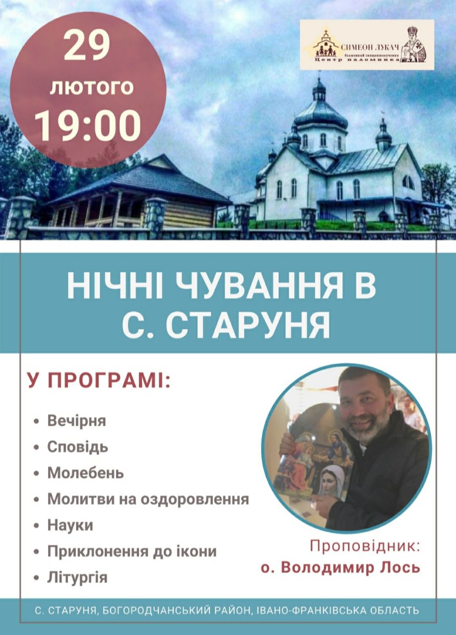 У паломницькому центрі села Старуня при парафії св. Апостолів Петра і Павла 29 лютого відбудуться традиційні нічні чування.