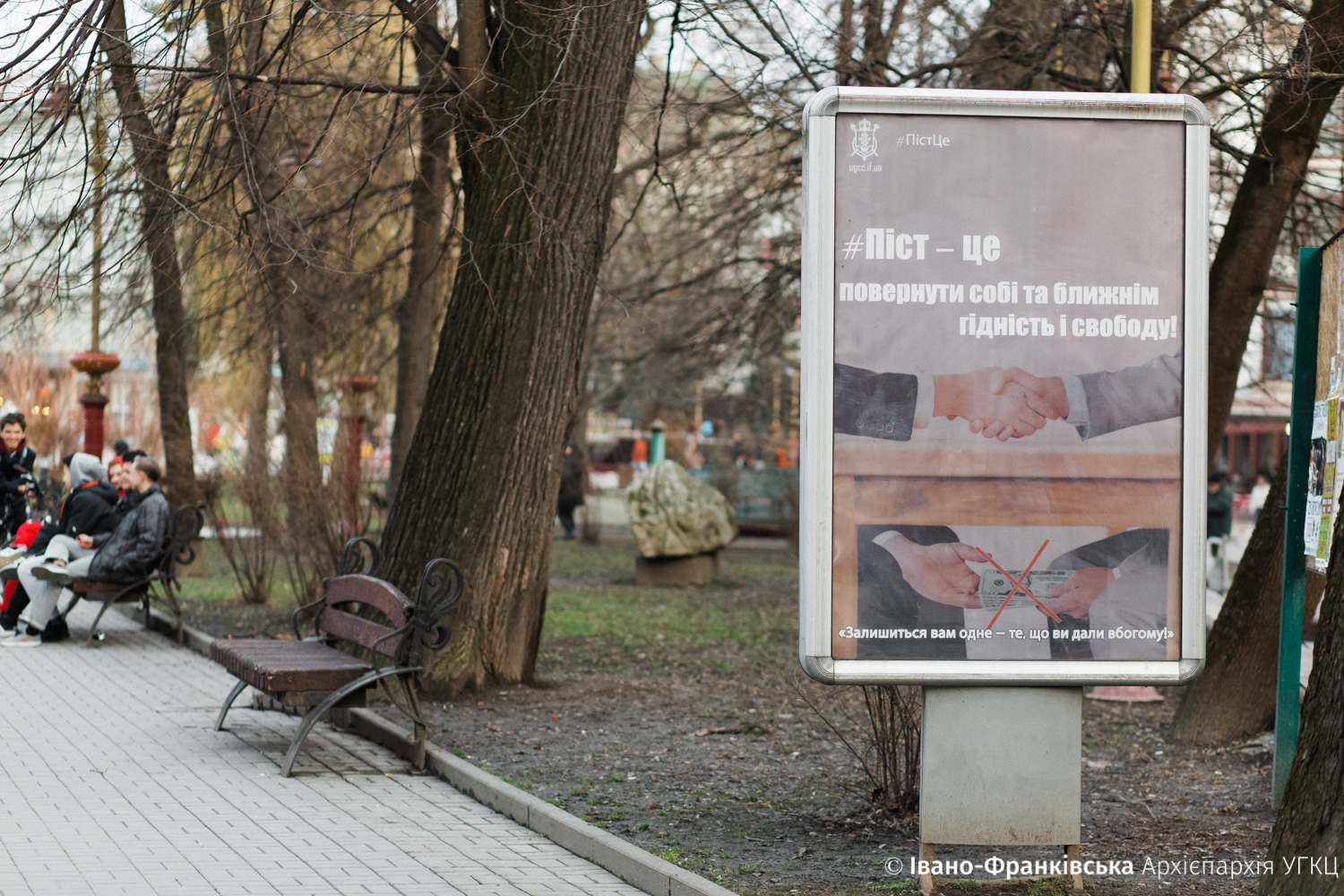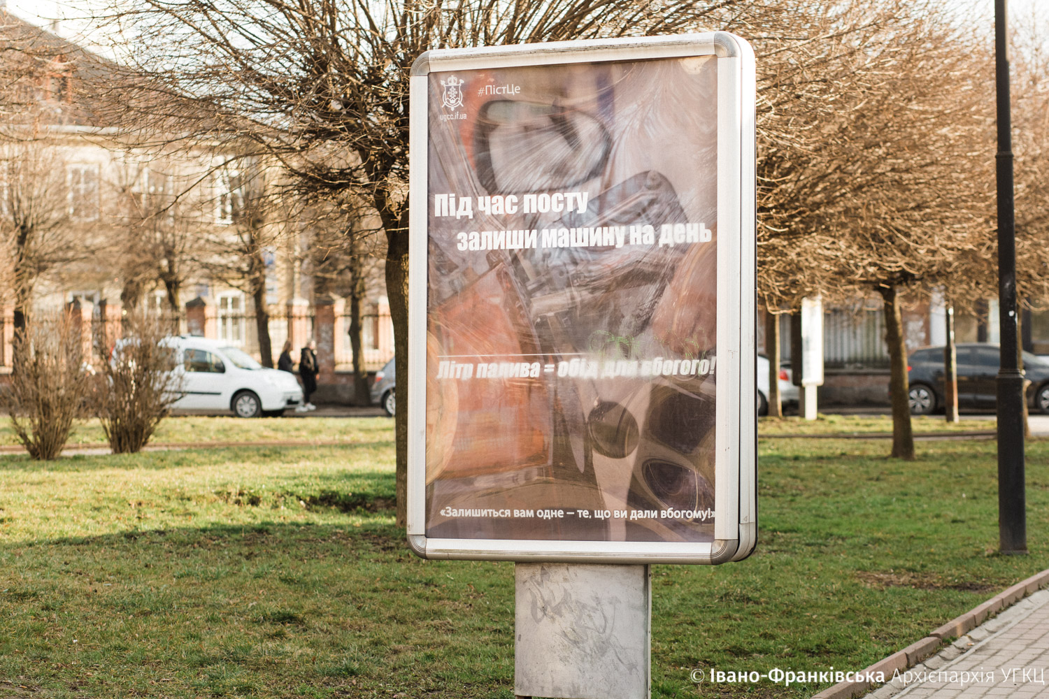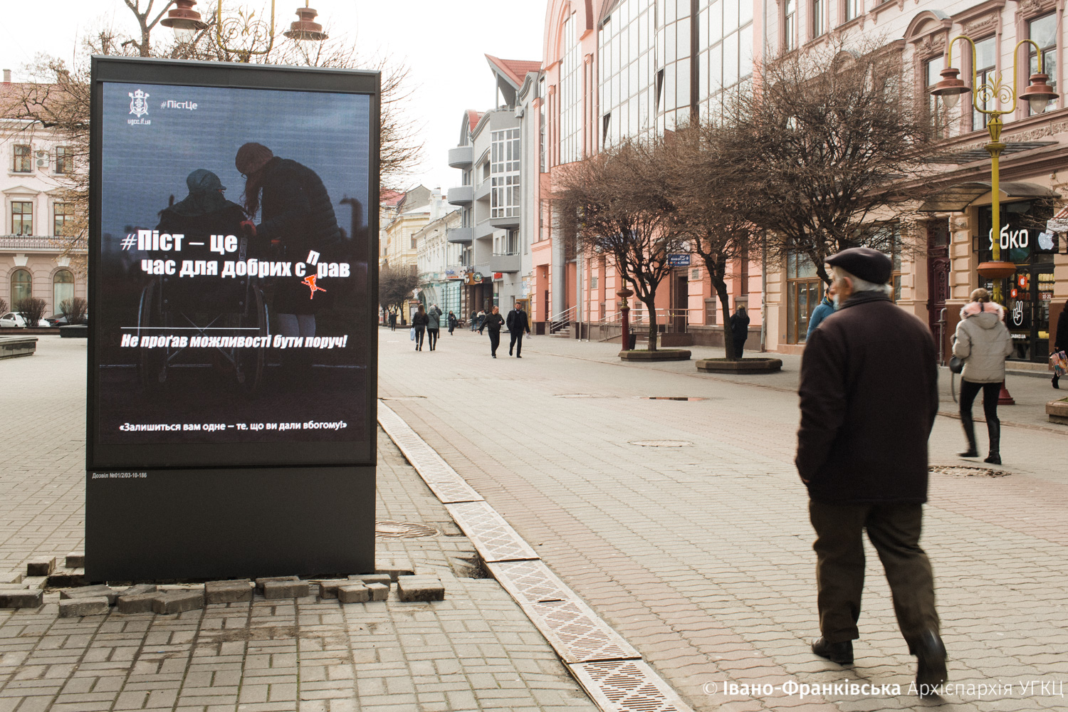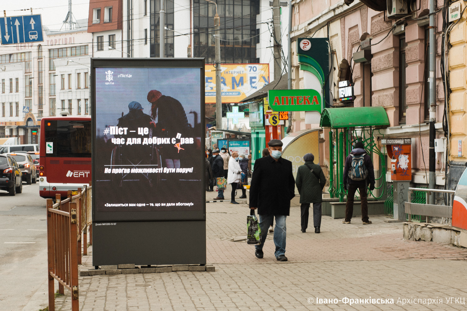 В рамках проєкту у центральній частині міста на умовах безкоштовної соціальної реклами вже розміщені сітілайти з промовистими закликами творити добро. Незабаром ці інформативні соціальні звернення з’являться й на білбордах. Зокрема на них можна прочитати наступне: «Піст – це час для добрих справ» «Під час посту віддай обід бідному» «Піст – це стримання язика. Пости «здорову» інформацію» «Під час посту носи маску з любові до ближнього» «Піст – це повернути собі та ближнім гідність і свободу» «Під час посту залиши машину: літр палива = обід для вбогого».