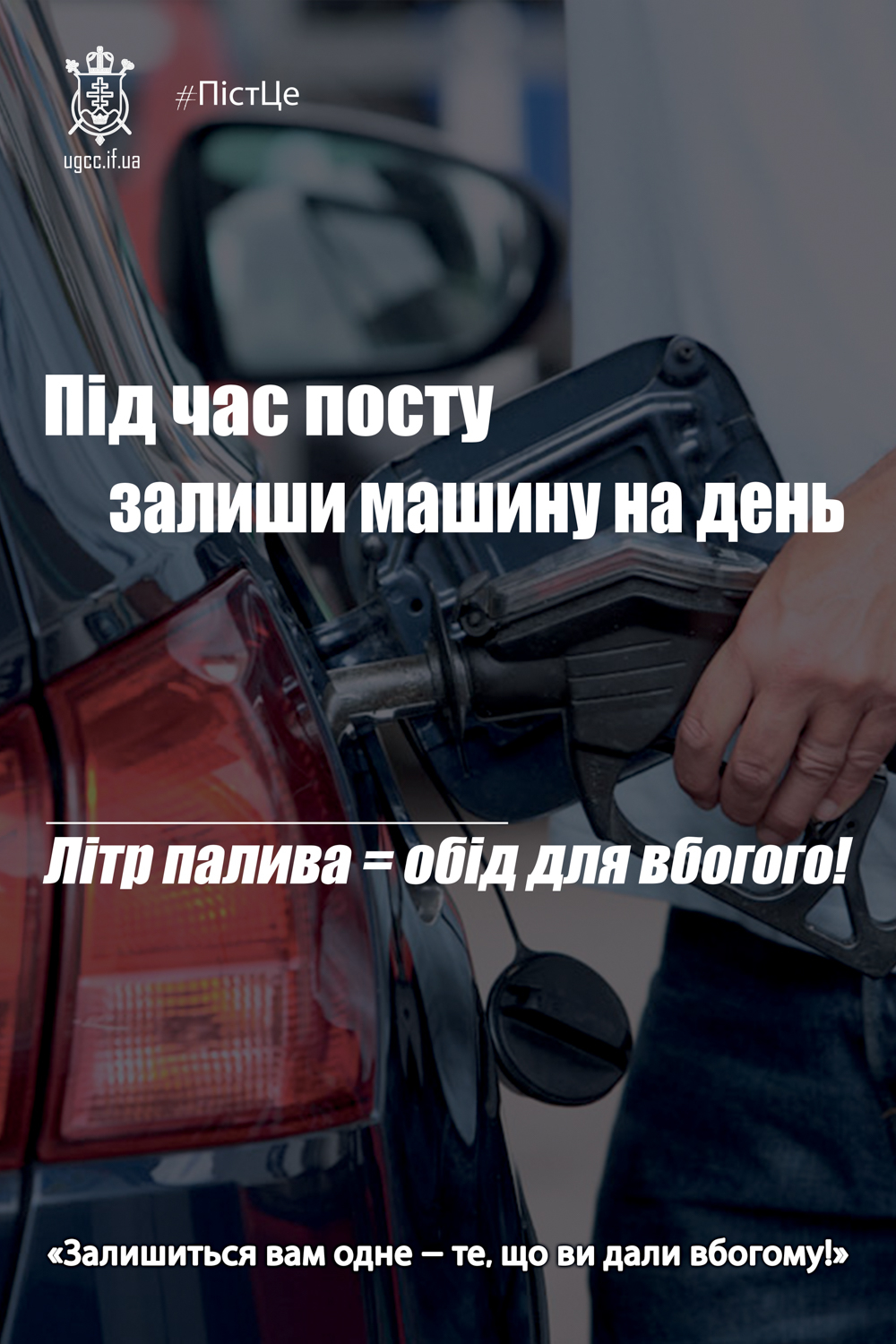 Реалізатори, дослухавшись до заклику Синоду Єпископів УГКЦ «Залишиться вам одне – те, що ви дали вбогому», закликають у часі Великого Посту не втрачати жодної можливості чинити діла милосердя. До прикладу, одним із закликів рекламної кампанії є «Під час посту залиши машину на день. Літр палива = обід для вбогого».