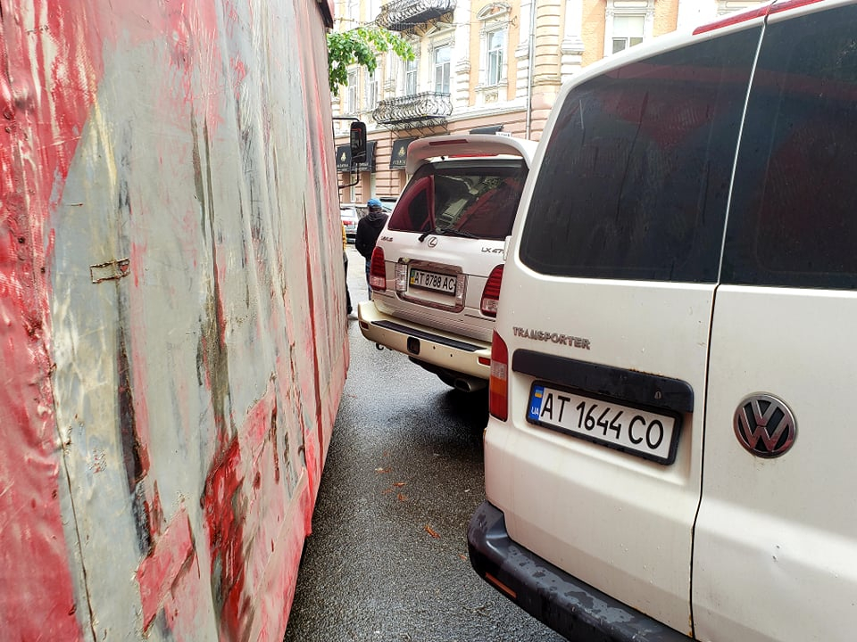 У центрі Івано-Франківська на вулиці Грушевського припаркований Lexus паралізував рух транспорту.