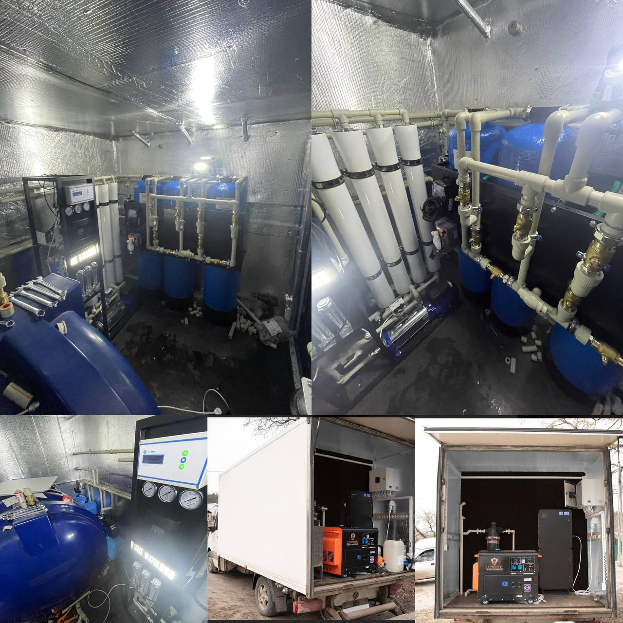 Особливість цього фургона в тому, що він може під’їхати до будь-якої водойми, скинути туди шланг і через свої фільтри видати 1,5 куба води за 1,5 год.