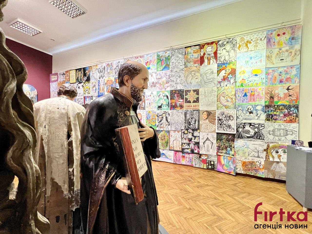 У залі також розміщена серія дитячих малюнків з міжнародного конкурсу «Для Бога я створю найкраще».