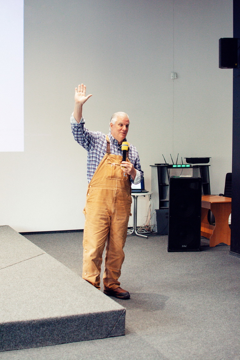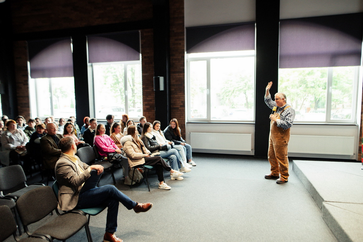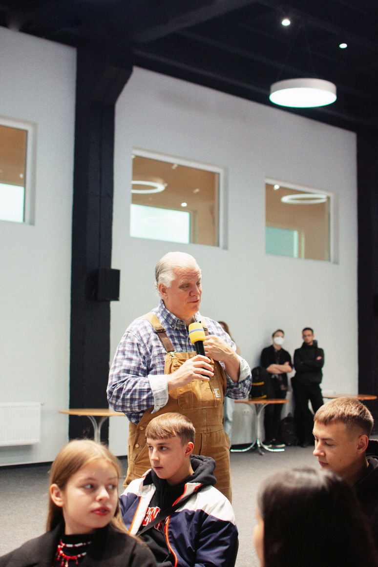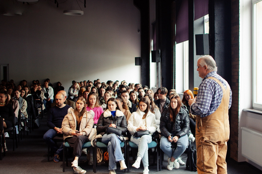 Гість дискутував із присутніми студентами щодо викликів, які постали сьогодні перед Україною, Європою та світом, про відбудову України після війни, творче сприйняття інженерії та інженерне сприйняття творчості.