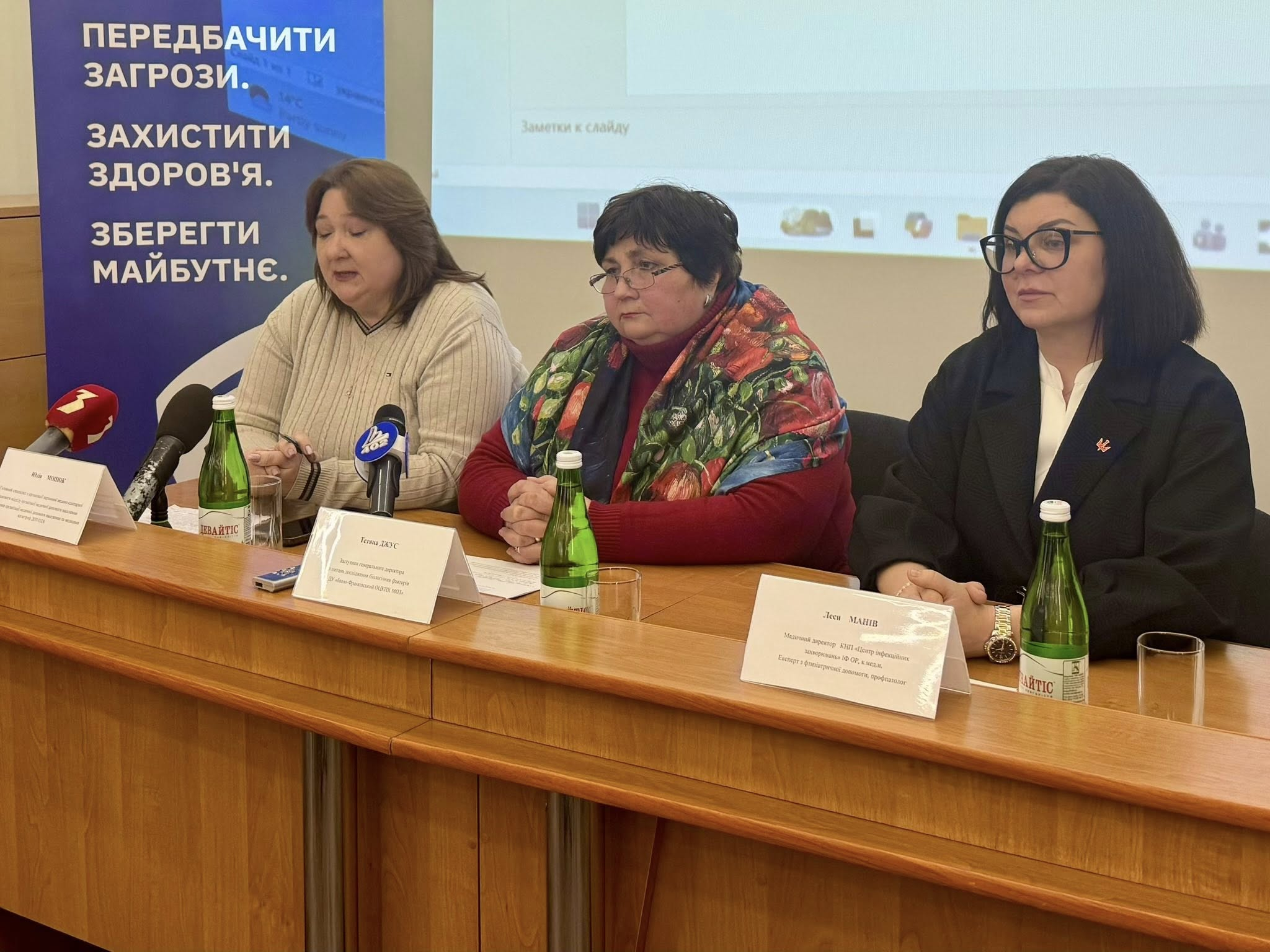 У брифінгу взяли участь заступниця генерального директора центру Тетяна Джус, головна спеціалістка відділу організації медичної допомоги населенню департаменту охорони здоров’я ОДА Юлія Монюк та медична директорка КНП «Центр інфекційних захворювань Івано-Франківської обласної ради» Леся Манів.