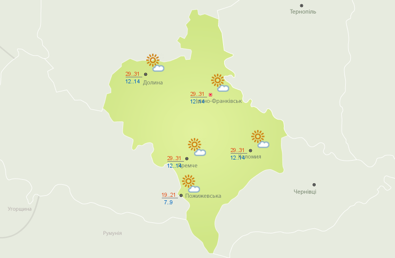 По місту Івано-Франківськ температура вночі 12-14°, вдень до 31°.