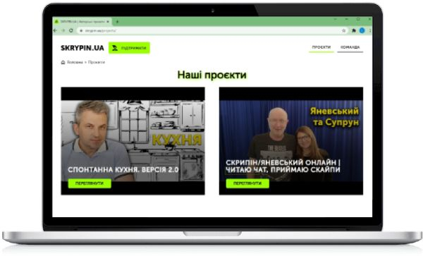 Нещодавно на сайт було внесено чергові зміни: тепер там можна дивитися трансляції інтерв'ю та актуальні відео з каналу проєкту, читати «гарячі новини», ознайомитись з історією, командою, повним переліком активностей SKRYPIN.UA, а також підтримати проєкт донатом. Незабаром там з'являться ще й новини про життя проєкту, щоб ви могли самі спостерігати за розвитком SKRYPIN.UA.