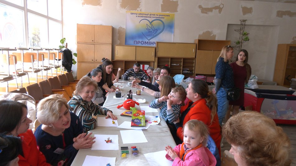 Арттерапією з відвідувачами центру "Промінчик" займається психологиня Надія Паньків. Вона каже, що щоразу придумує нові майстер-класи та ігри, щоб зацікавити як дітей, так і дорослих.