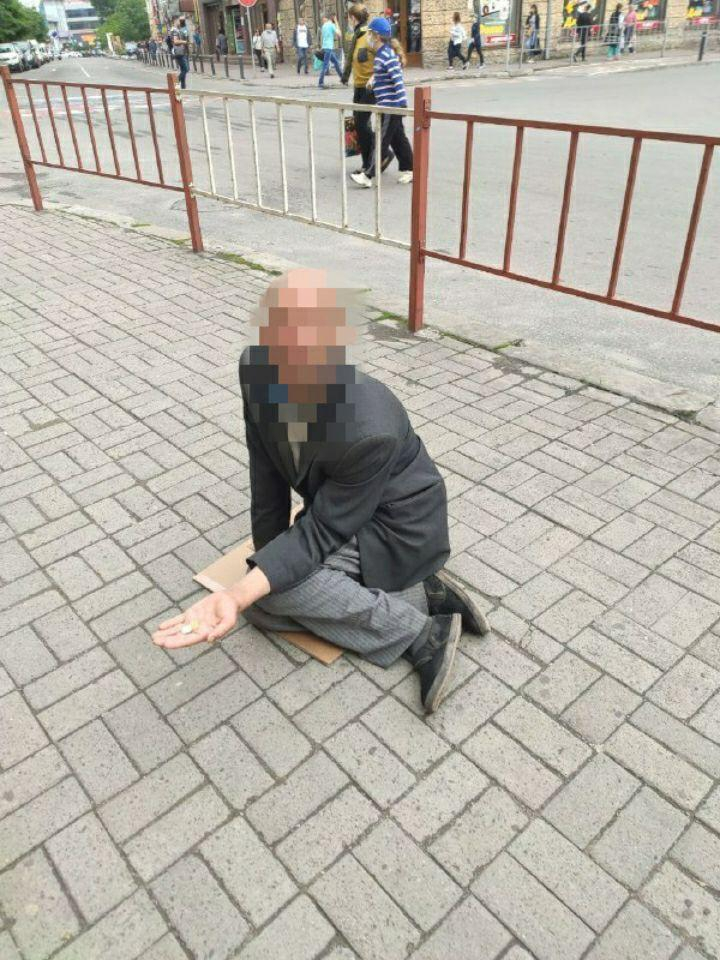 Муніципальна інспекція (мабуть, і медики) висловлюють "велику подяку" співчутливим франківцям, що подають милостиню жебраку Любомиру.