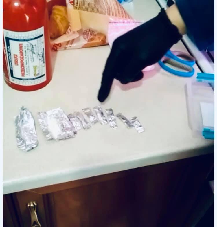 Пізніше під час проведення санкціонованого обшуку за місцем проживання підозрюваних поліцейські виявили та вилучили поліетиленовий пакет з порошкоподібною речовиною, а також десять фольгових згортків із речовиною, зовні схожу на наркотичний засіб «амфетамін». Які останні зберігали з метою збуту.