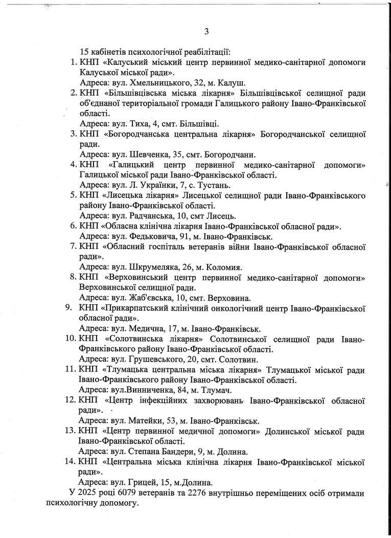 У 2025 році психологічну допомогу отримали 6079 ветеранів та 2276 ВПО, що включає консультації, реабілітацію та кризову підтримку.