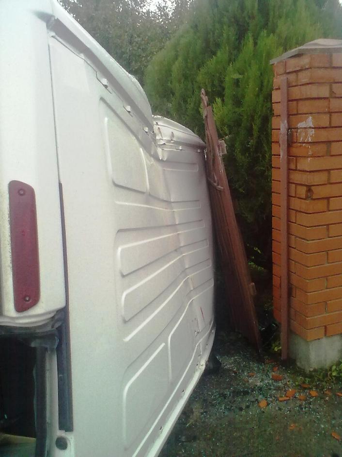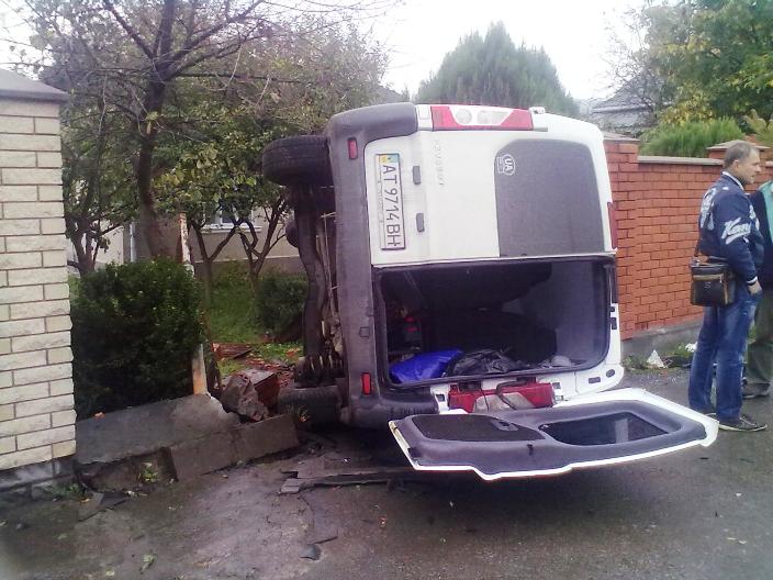 Перекинувшись на бік, бус збив металеві ворота і опинився на приватному подвір’ї на протилежній стороні дороги. На щастя, перехожих поблизу аварії не було, - передає журналіст "ГК" із місця події.