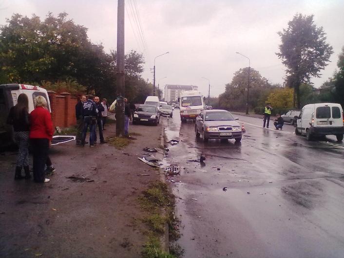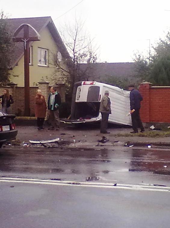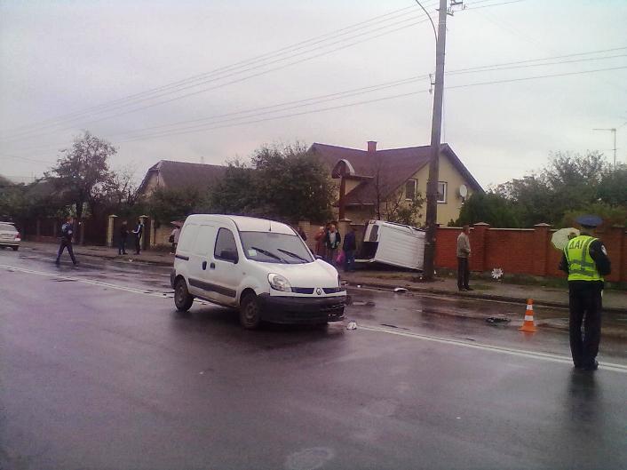 Сьогодні, 3 жовтня, близько 10 год. на вулиці Коновальця, в районі Фурнітурного заводу, сталася ДТП, внаслідок якої мікроавтобус «Пежо», оминаючи «пиріжок» «Рено», на великій швидкості злетів із траси.