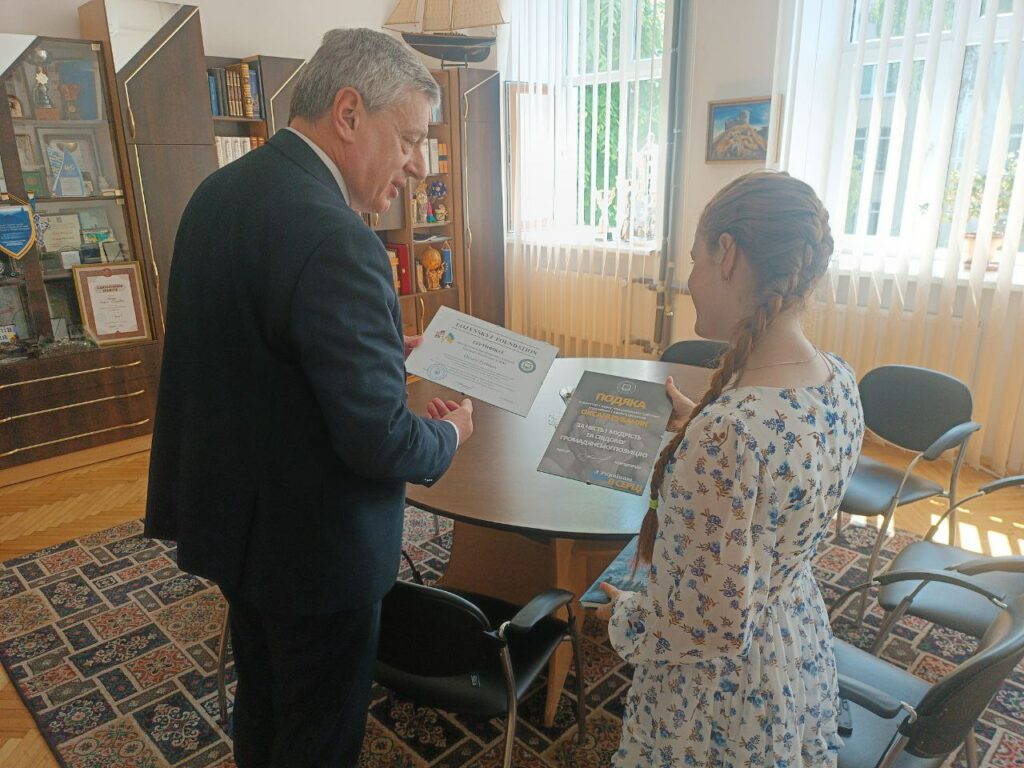 Ректор нагородив її Подякою за честь і мудрість та свідому громадянську позицію. Також Оксані Рубаняк вручили сертифікат про призначення їй грошової стипендії Фундації Лозинських (США).