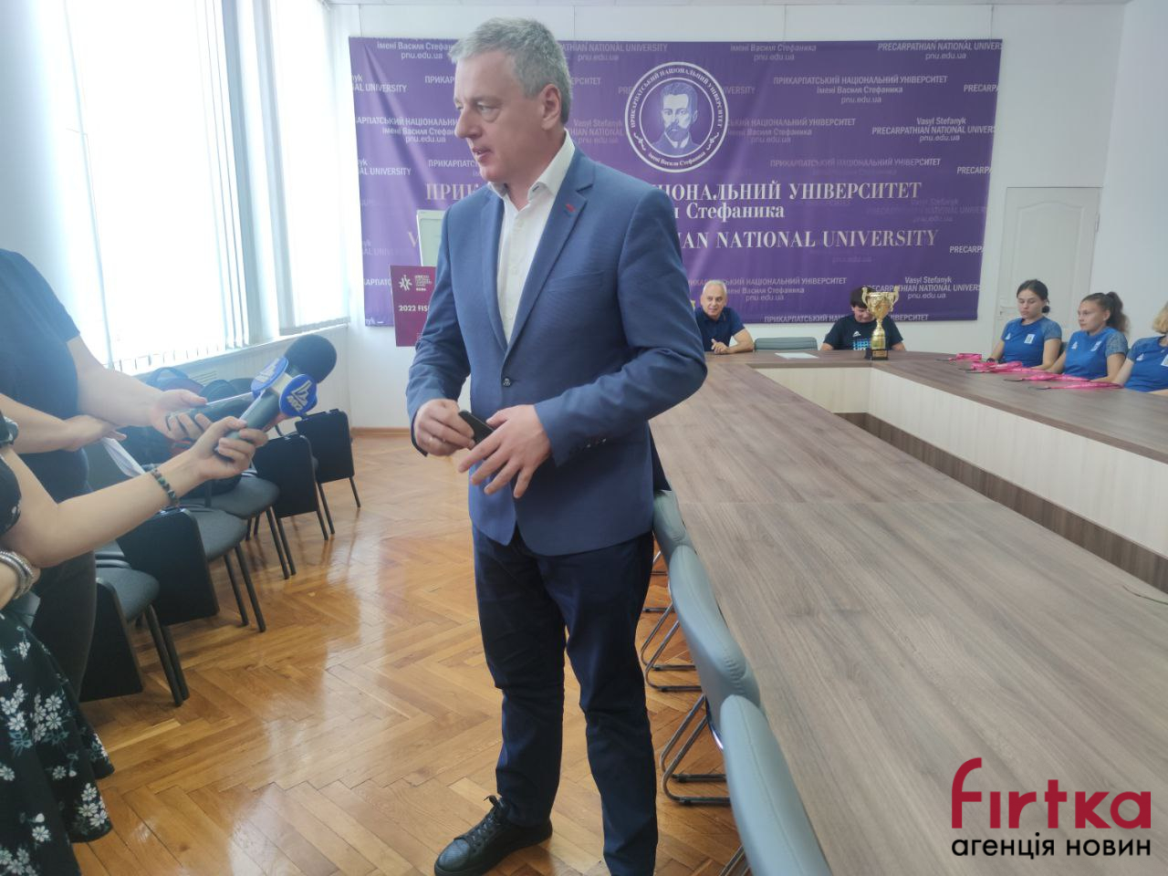 На пресконференції були присутні: тренер команди Юрій Процюк, гравчині команди та ректор університету Ігор Цепенда, передає Фіртка.