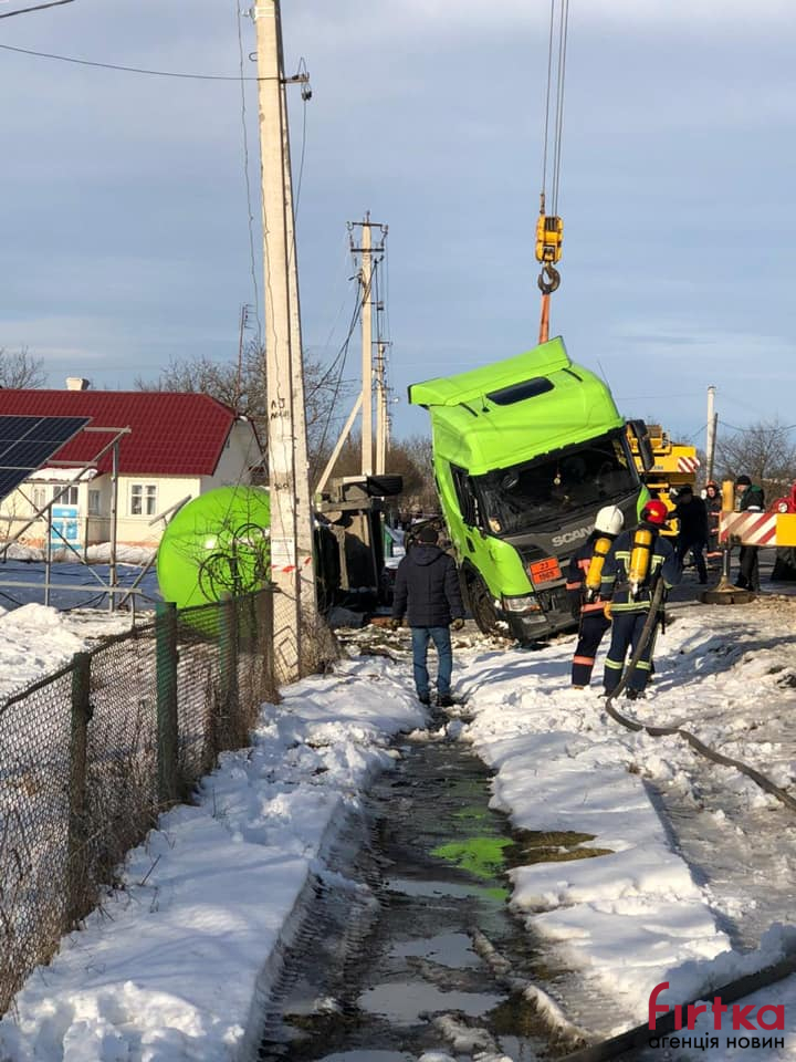 Як писала Фіртка, увечері 28 грудня на автодорозі Н-09 "Мукачево-Львів" в селі Цуцилів злетіла в кювет фура "ОККО" із цистерною для перевезення газу вагою 20 тонн.